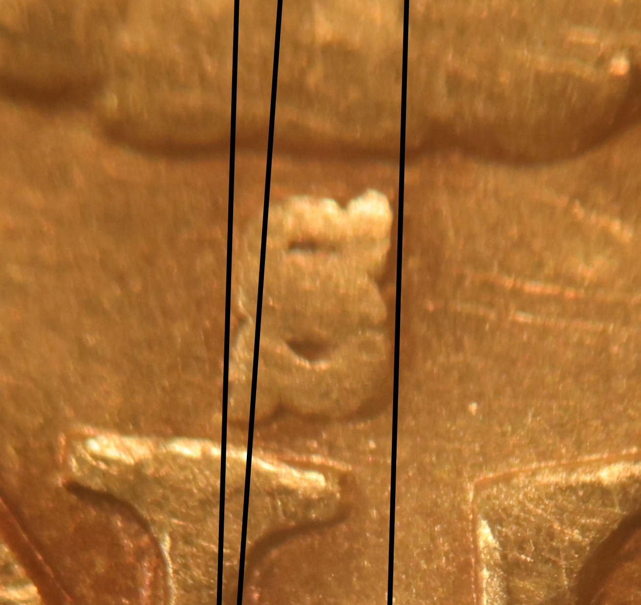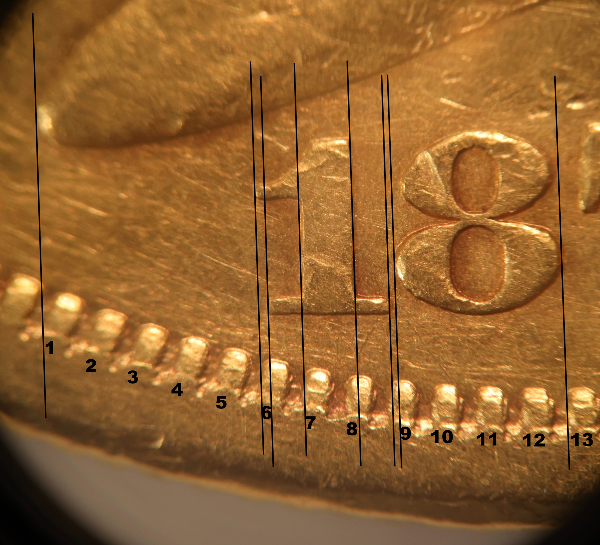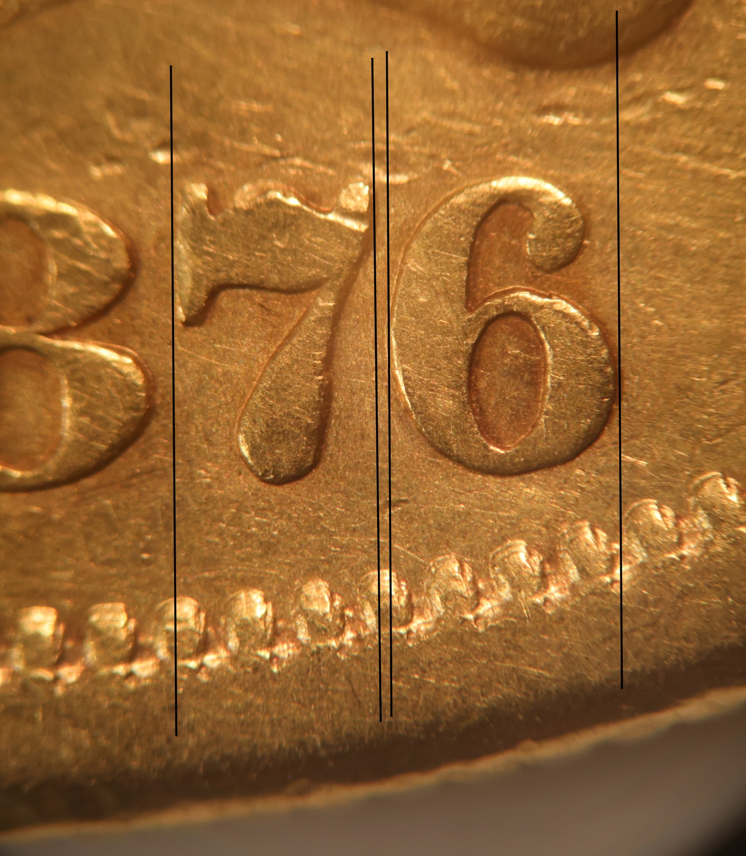 Date is well centered up and down but placed slightly to the right. 8 Centered under the left side of the B.