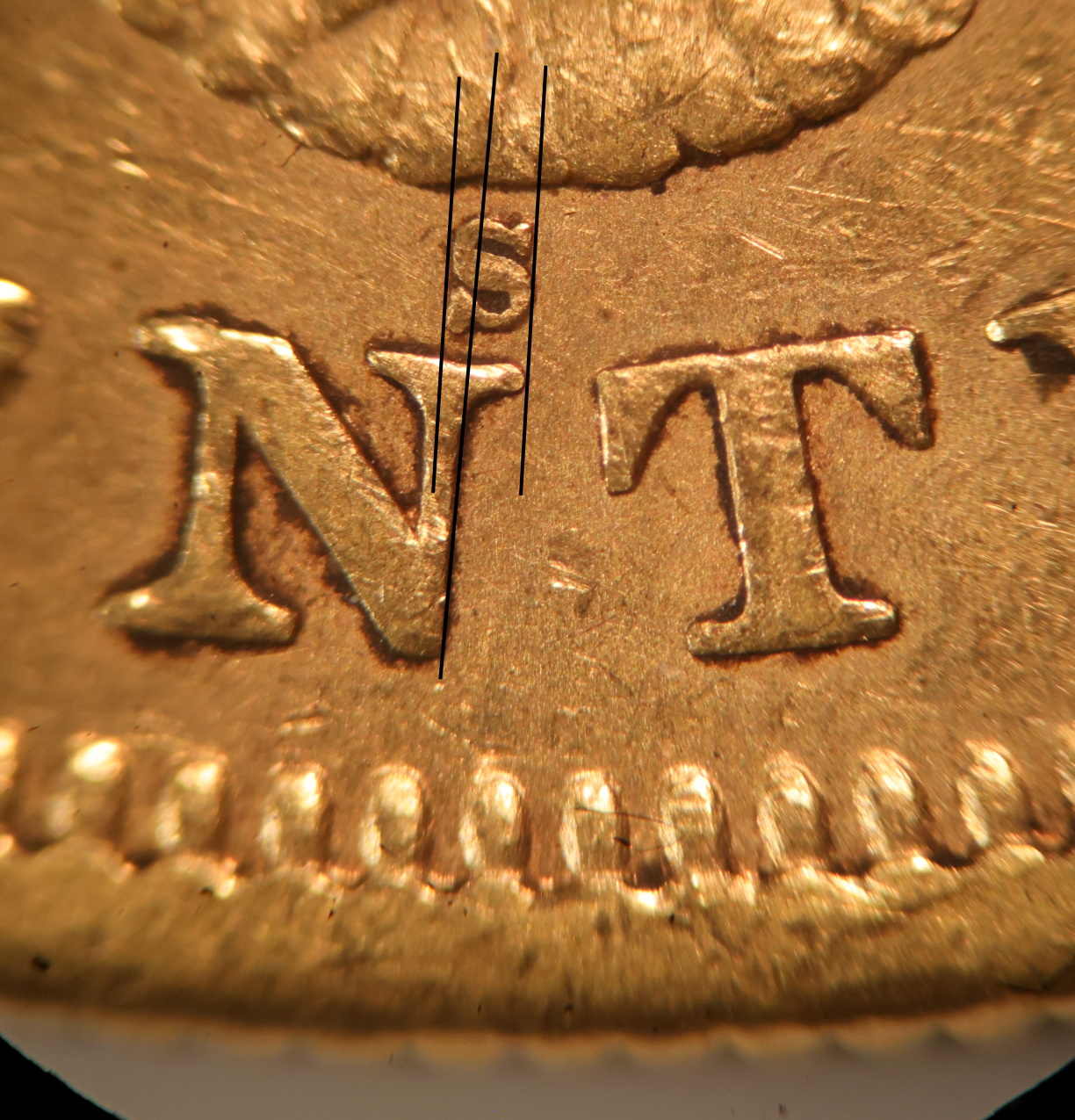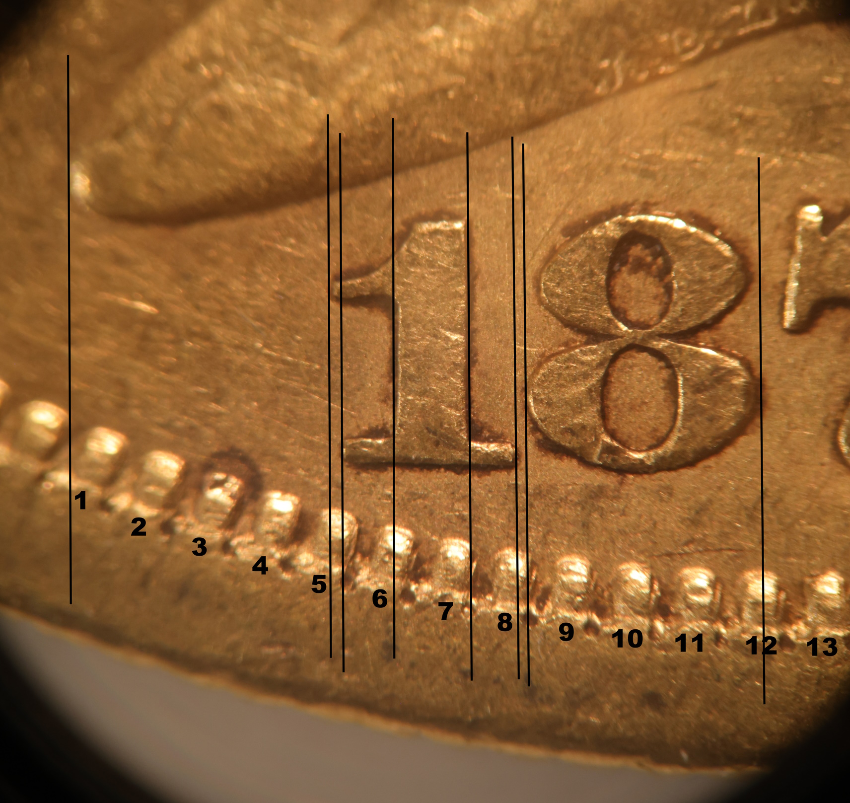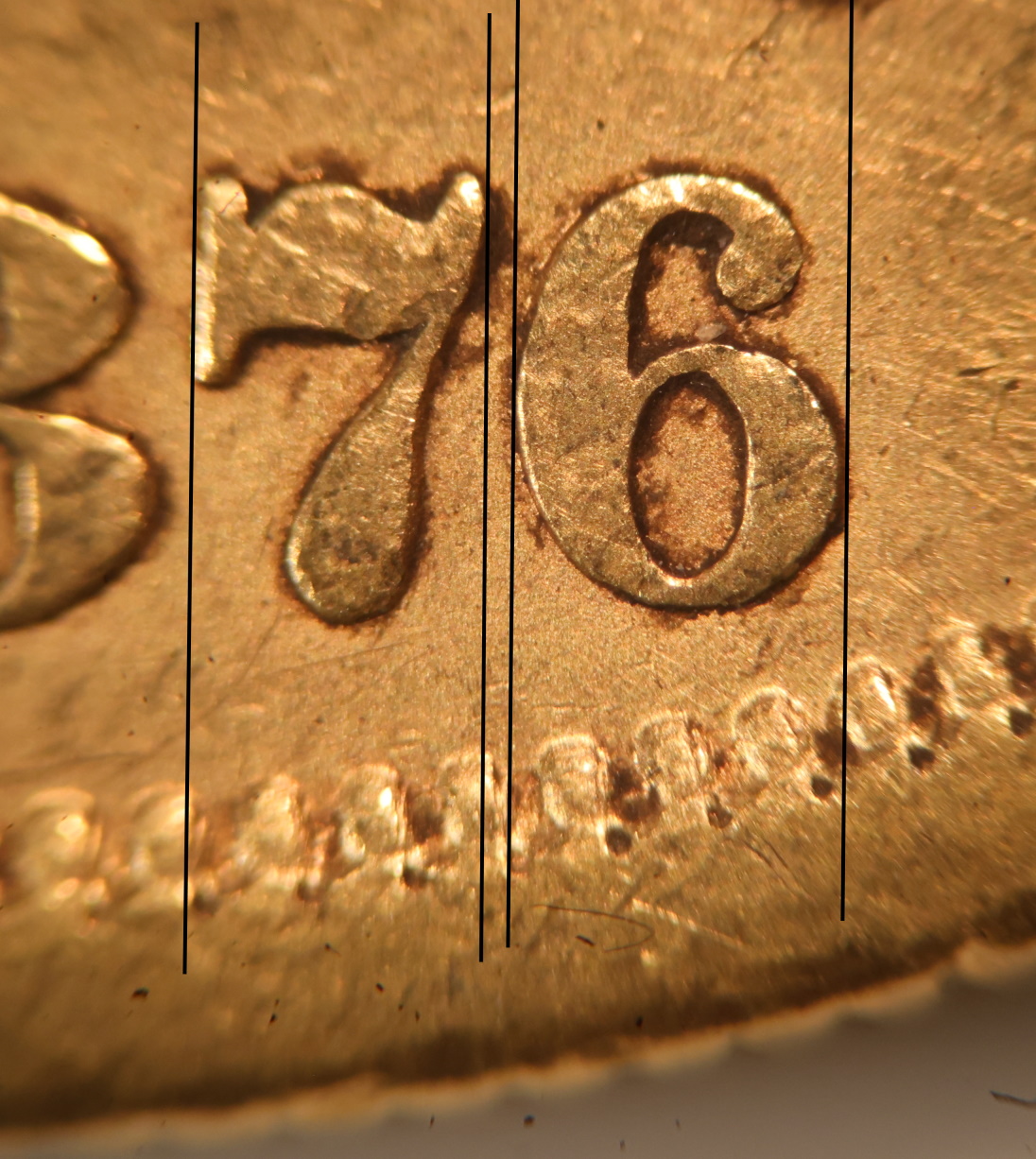 Date is pretty well centered both up and down, and left to right. 8 Centered under the dot following the J.