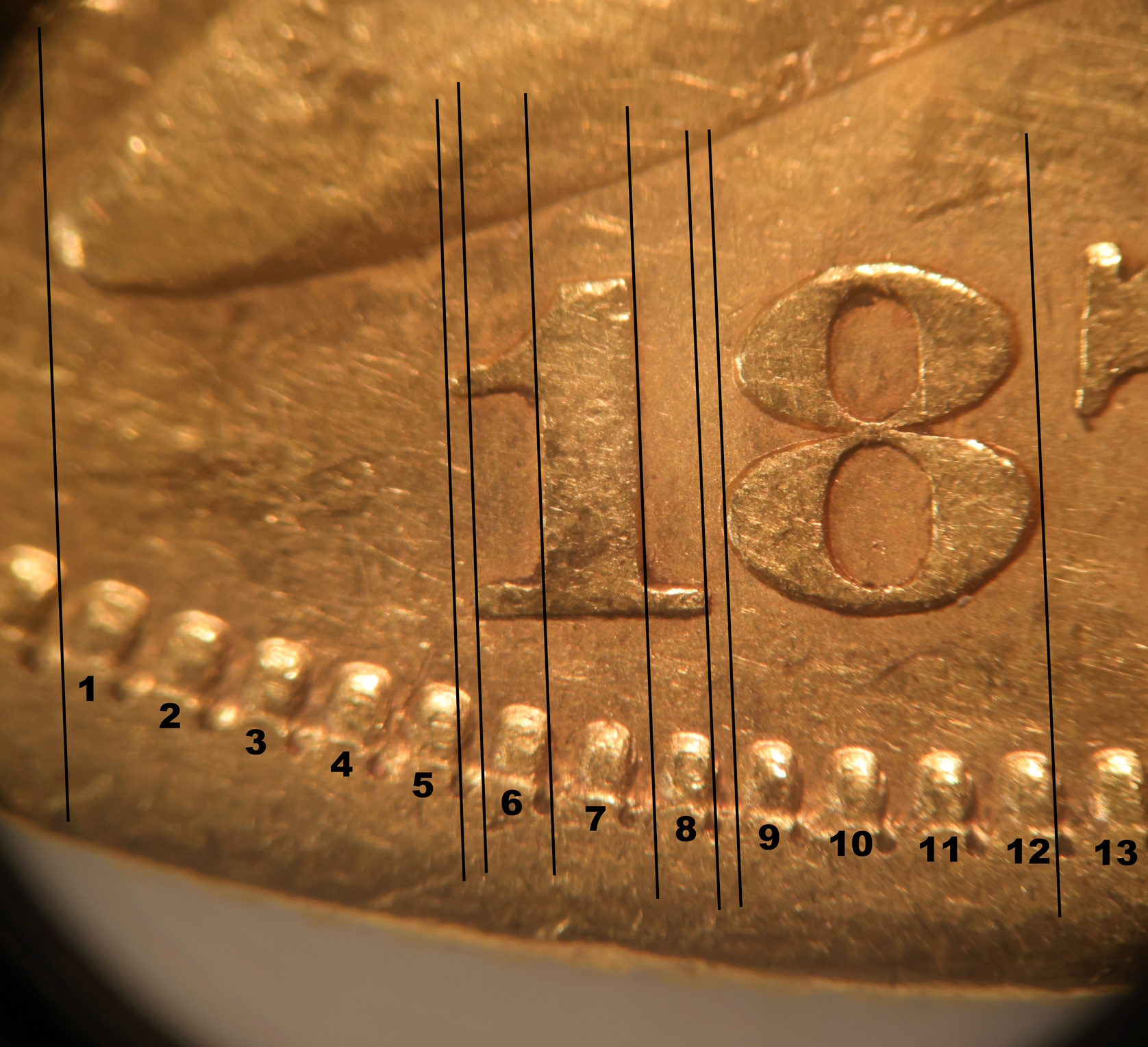 Date is pretty well centered both up and down, and left to right. 8 Centered under the dot following the J.