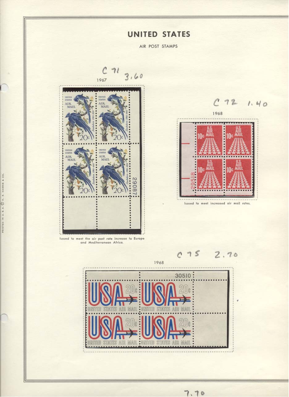 Stamp Plate Block Scott #C71, C72 & C75 Air Post Air Mail Stamps